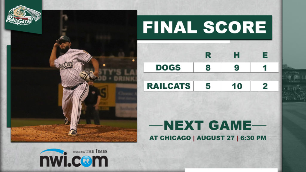 In the final home game of the 2023 regular season, the Gary SouthShore RailCats (37-55) fell to the Chicago Dogs (52-40) 8-5 on Sunday at The Steel Yard.