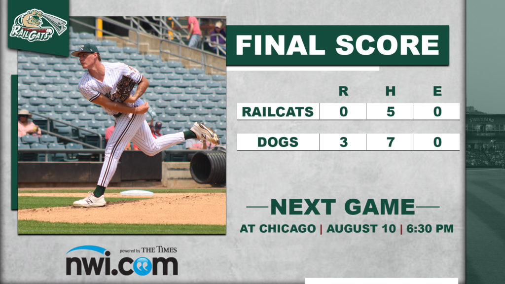 Rosemont, IL – In a game where runs were hard to come by, the Gary SouthShore RailCats (33-43) dropped the middle game of a three-game set to the Chicago Dogs (38-37) 3-0 on Wednesday night.