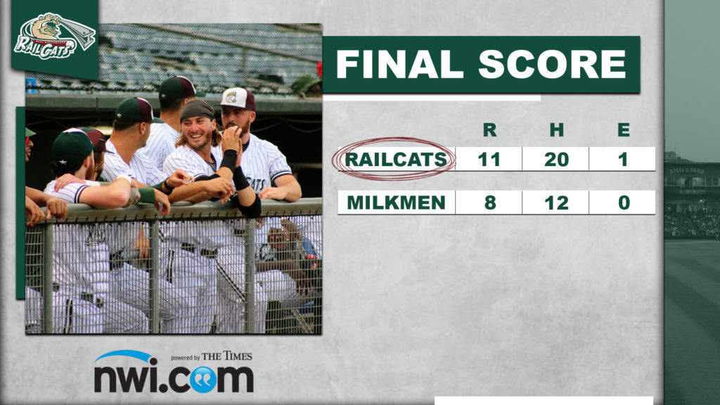 Franklin, WI – The Gary SouthShore RailCats (41-58) broke out the bats to end the year in style, notching a season-high 20 hits to take down the Milwaukee Milkmen (56-44) 11-8 at Franklin Field.