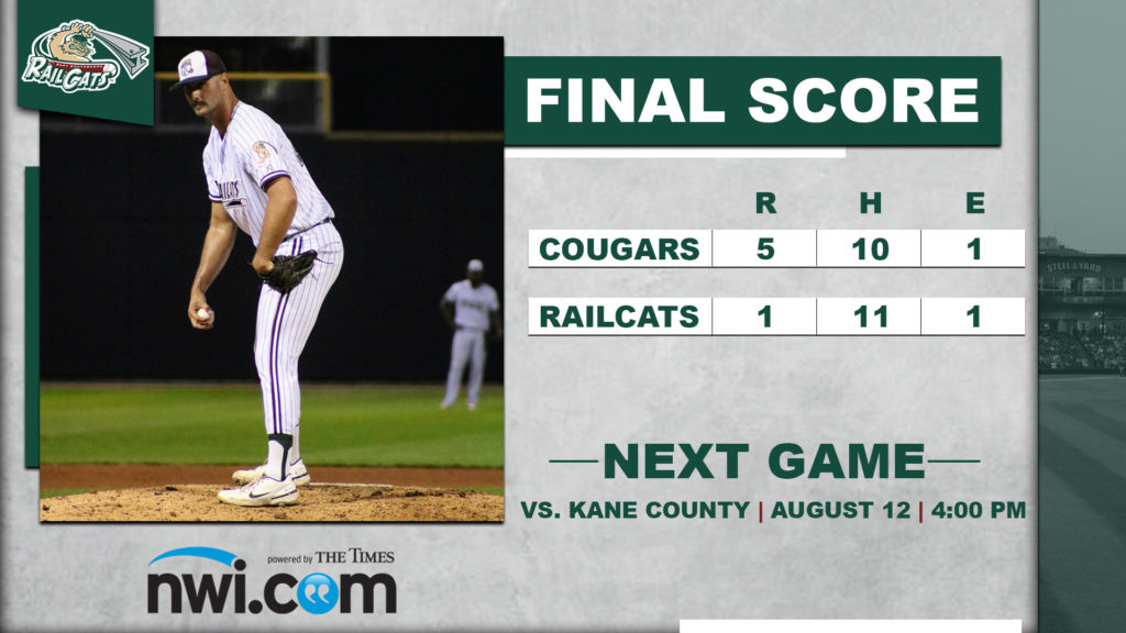 The Gary SouthShore RailCats (33-45) took an early lead and out-hit the Kane County Cougars (39-40), but they ultimately fell 5-1 in Friday’s series opener at The Steel Yard.