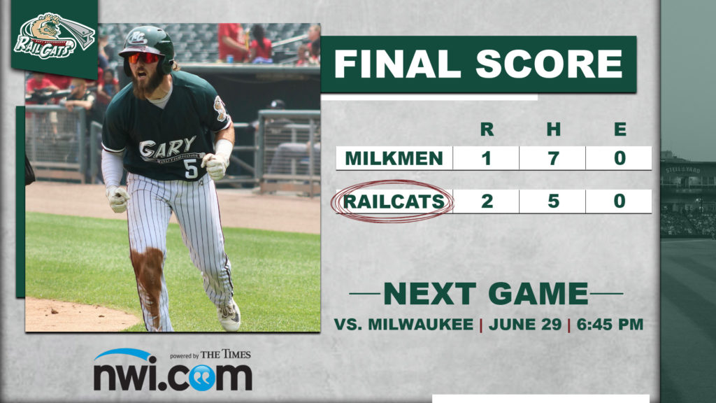 The Gary SouthShore RailCats (18-25) benefited from another excellent display on the mound to fuel their victory, topping the Milwaukee Milkmen (24-17) 2-1 on Wednesday afternoon.