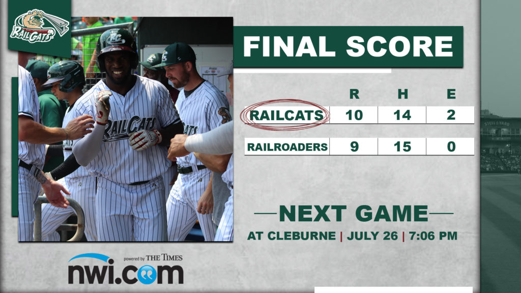 The RailCats produced four multi-run frames to stage two separate middle-inning comebacks, and the bullpen stepped up to lock down a red-hot Railroaders lineup time and time again in clutch situations to pick up the thrilling win.