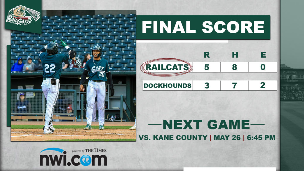 Oconomowoc, WI – The Lake Country DockHounds (3-8) threw everything they could at the Gary SouthShore RailCats (8-4) in the series finale at Wisconsin Brewing Company Park, but the RailCats came up clutch in the biggest moments to snatch a 5-3 victory.