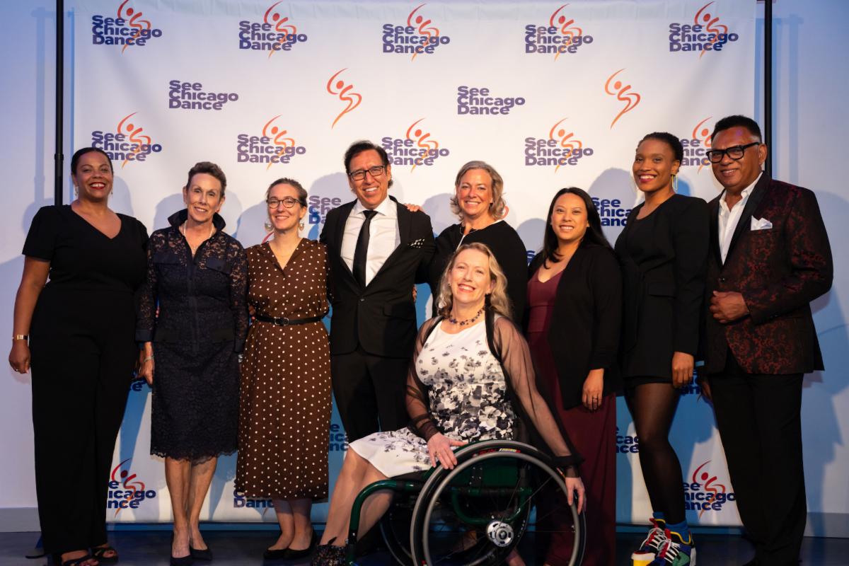 See Chicago Dance Board of Directors: (L to R) Amanda Banks, Debra Bernstein-Siegel, Sarah Venuti Yates, Jorge Perez, Ladonna Freidheim, Dawn Stanislaw, Marisa Santiago, Kia Smith, Michael Foster at the See Chicago Dance 2024 Gala Community Celebration & Awards Presentation, September 24 at Venue West. Not pictured are Erik Kaiko and Allyson Ratliff. Photo by Michelle Reid/MReid Photography