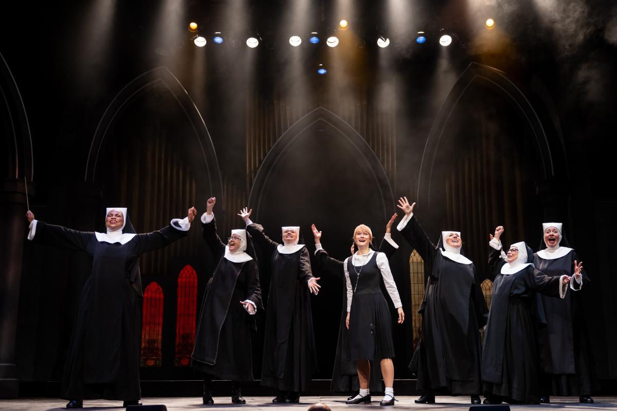 Just a quick note: the musical version of Sister Act is slightly different from the movie starring Whoopi Goldberg as Delores. Instead of Reno and San Francisco, these sisters live in Philadelphia. Instead of a soundtrack heavily influenced by Motown, Alan Menken’s score pays tribute to 70’s pop and disco.