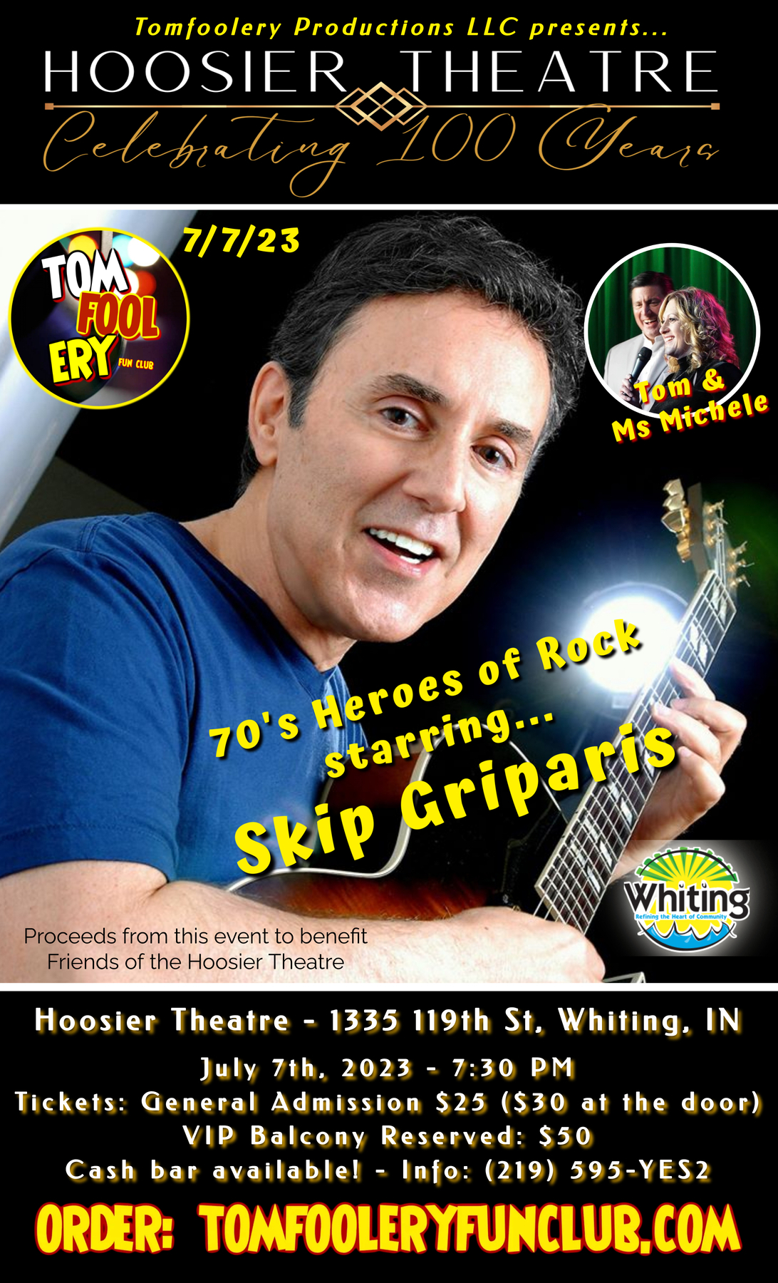 Tomfoolery is delighted to welcome the incomparable Skip Griparis to the iconic Hoosier Theatre in Whiting, IN on July 7th @ 7:30 PM!