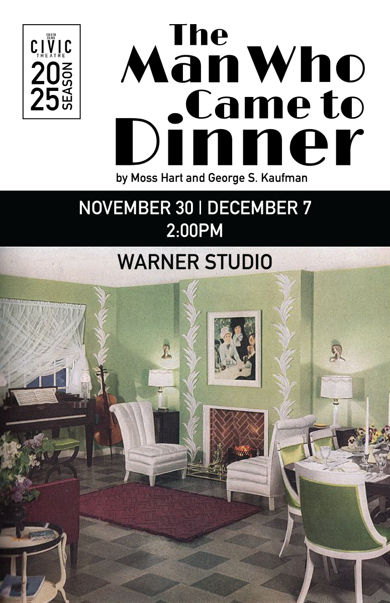 South Bend Civic Theatre presents a staged reading of The Man Who Came to Dinner, by Moss Hart and George S. Kaufman.