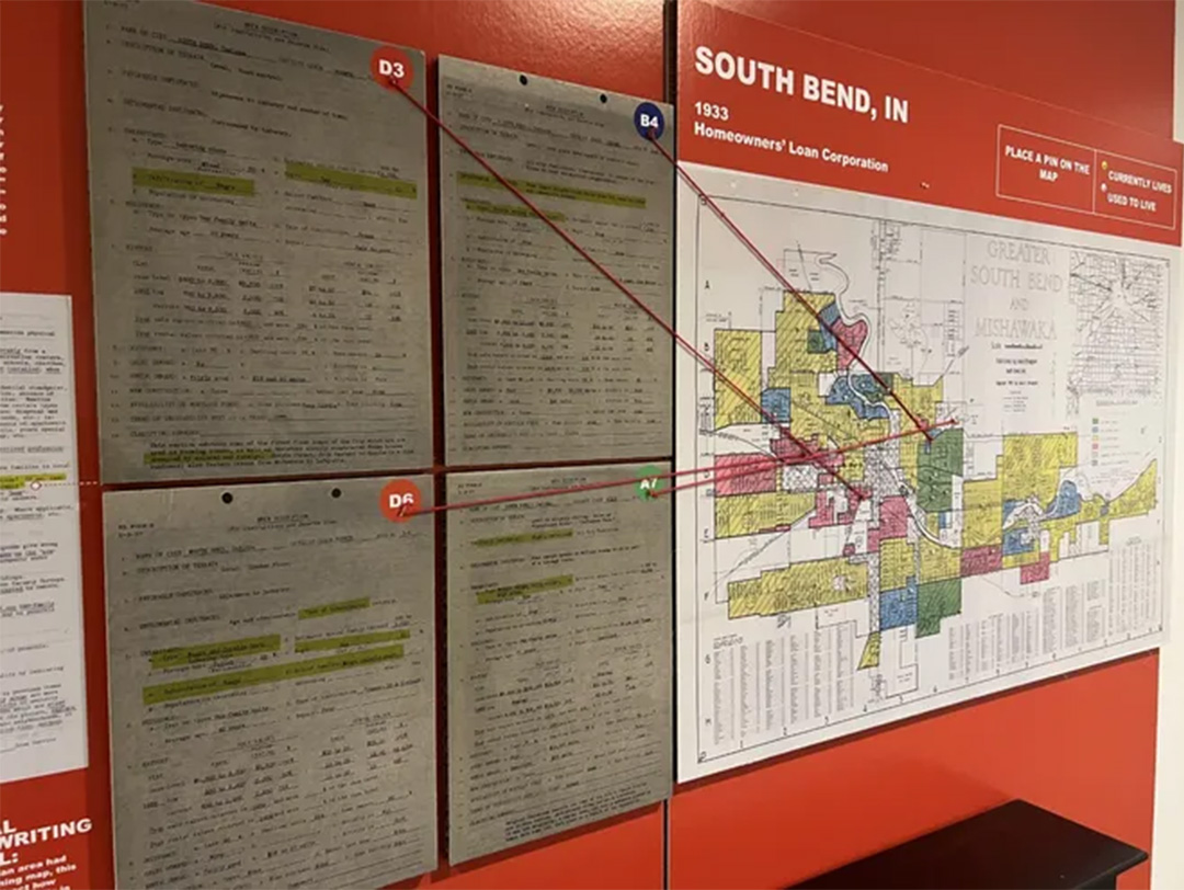 The exhibit "Undesign the Redline" will be featured in the Warner Gallery at CIVIC beginning November 1. Five compelling panels illustrate the devastating impact of redlining, with several featuring South Bend neighborhoods.