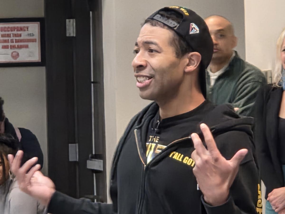 Jesse Jones speaks during a recent dance workshop featuring choreography from "The Wiz." Photo by Eloise Marie Valadez