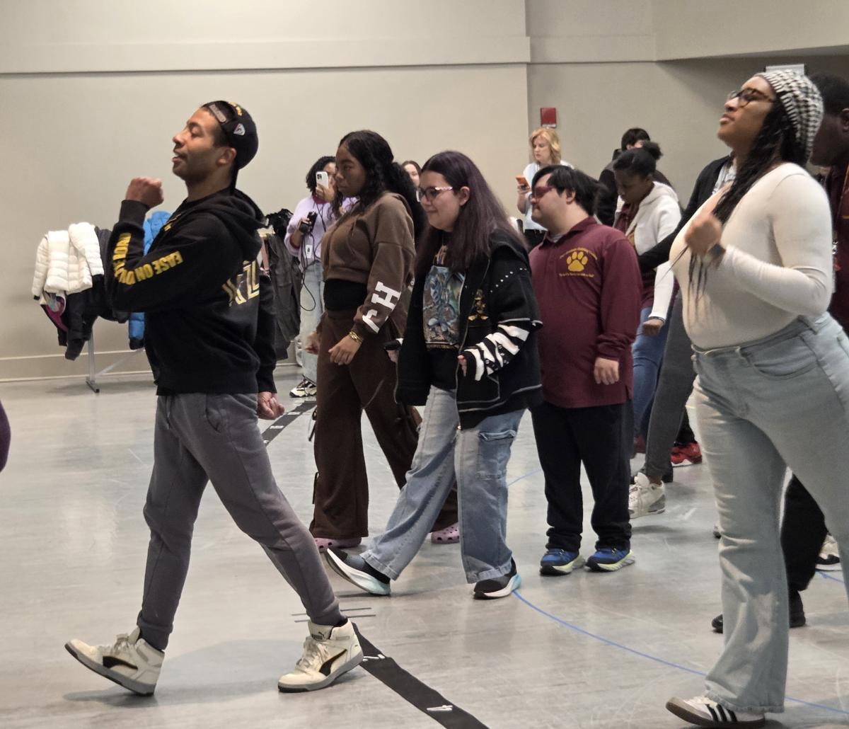 The students laughed and cheered each other on as they learned the joyous routine. Later in the workshop, they delighted in watching their teachers and other staff members learn a short piece of choreography as well.