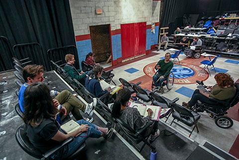 Director Brian Balcom and the cast in rehearsal for Teenage Dick.