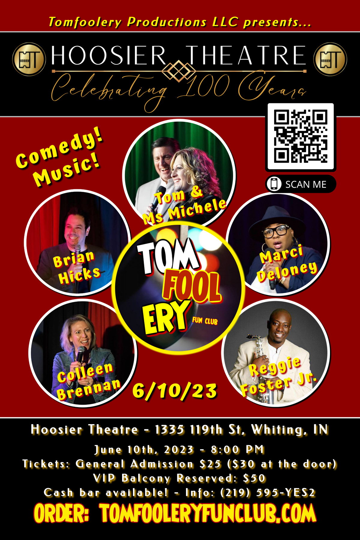 The majestic auditorium of the iconic Hoosier Theatre in Whiting, IN will once again be filled with laughter and music as Tomfoolery makes a return to the iconic venue on June 10, 2023! It will be an evening of fun as only the Fun Club can provide!