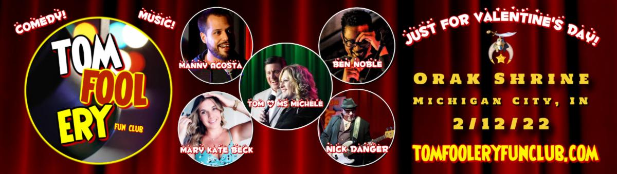 It's a very special Valentine's Weekend "night out" as The Tomfoolery Fun Club returns to the beautiful Orak Shrine in Michigan City, IN February 12th! An evening of comedy and rockin' music awaits for this one-of-a-kind date night!