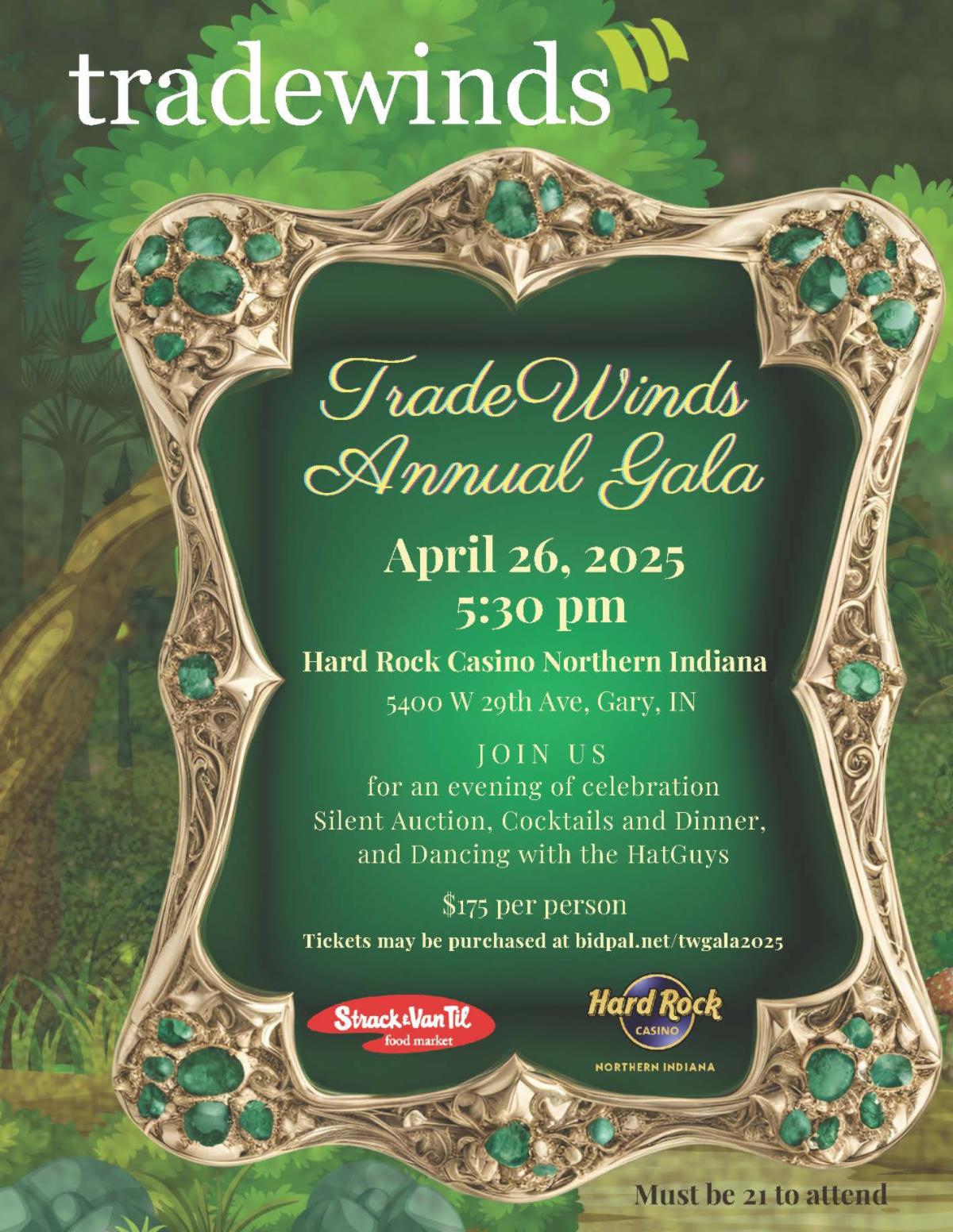 TradeWinds Annual Gala will take place on April 26, 2025 at Hard Rock Casino Northern Indiana. An evening of celebration Silent Auction, Cocktails and Dinner, and Dancing with the HatGuys.