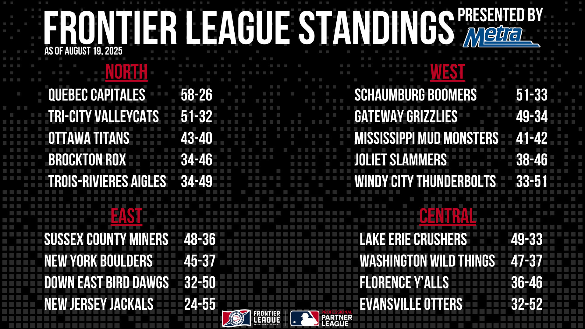 2025 standings are brought to you by Metra. Thank you for being a terrific sponsor of your, Schaumburg Boomers!