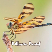 The Halloween pennant is a dragonfly that gets its name from its shiny amber brown body and orange/amber wings with dark brown bands marking them. Photo courtesy Jeff Danielson