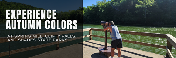 Shades State Park’s viewer can be found at Prospect Point on Trail 1. It offers a wide view overlooking Sugar Creek with an abundance of fall foliage to enjoy.
