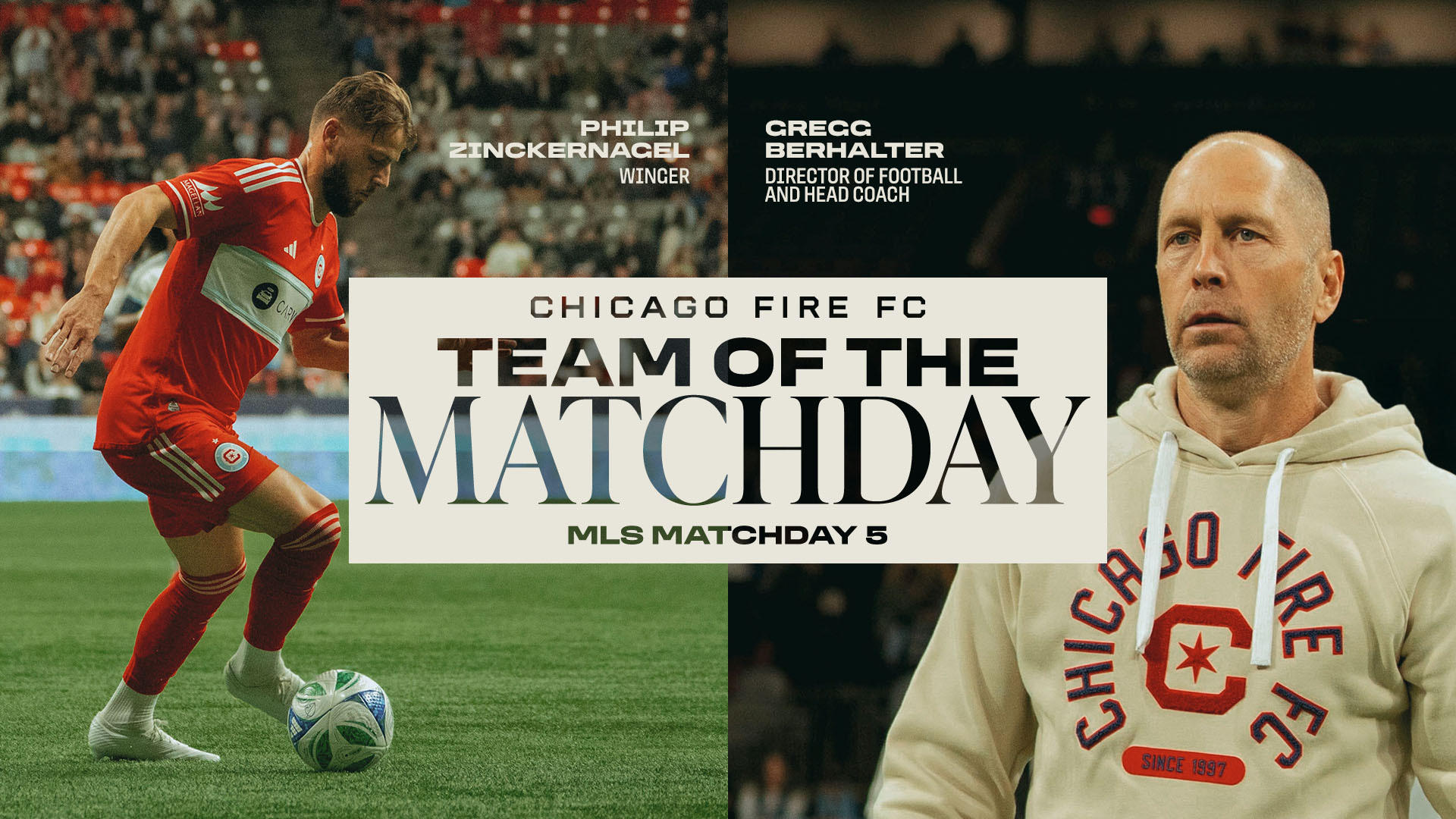 Chicago Fire FC winger Philip Zinckernagel and Director of Football and Head Coach Gregg Berhalter were named to the MLS Team of the Matchday for Matchday 5 following Chicago’s 3-1 victory at Vancouver Whitecaps FC on Saturday. The winger’s inclusion marks the first time in Club history that at least one Fire player has appeared in five consecutive Teams of the Matchday as a starter.