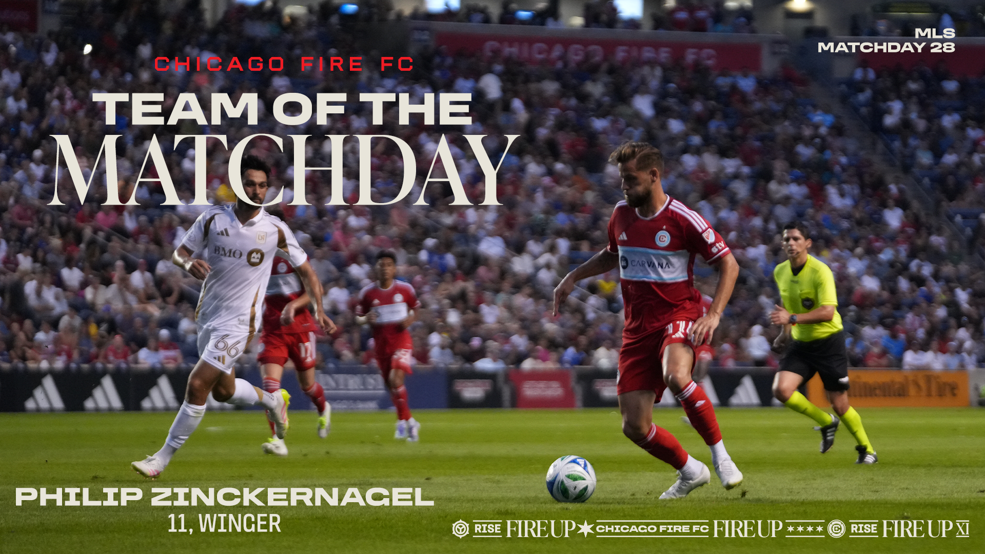 Chicago Fire FC winger Philip Zinckernagel was named to the MLS Team of the Matchday for Matchday 28 following his performance in Saturday night’s 2-2 draw against Los Angeles Football Club at SeatGeek Stadium in Bridgeview, Ill.