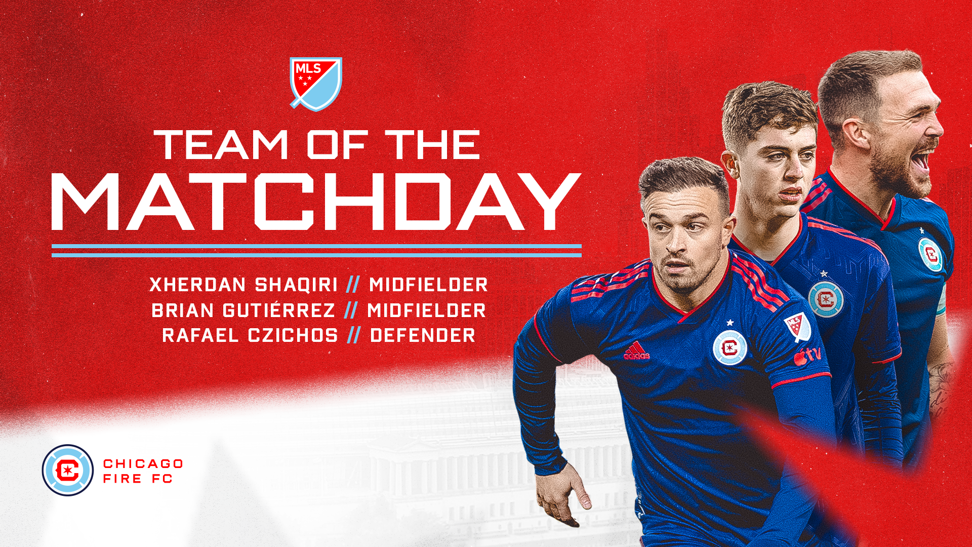 Chicago Fire FC midfielder Xherdan Shaqiri, defender Rafael Czichos and midfielder Brian Gutiérrez were named to the MLS Team of the Matchday (TOTM) for Matchday 12 following stellar individual and collective performances in Saturday afternoon’s 1-0 win against St. Louis CITY SC.