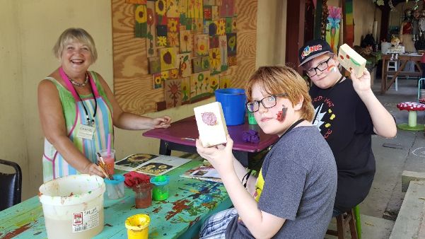 - Collaborate by adding to a Found-Item Mandala or adding a painted panel to our new Children’s Mystery Mural.