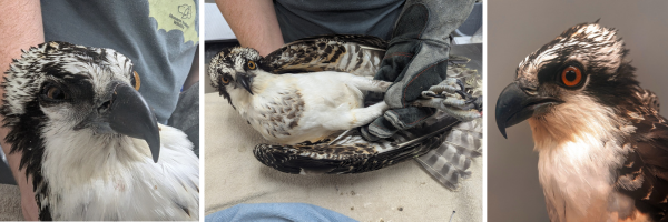 In September, the rehabilitation center admitted a male Osprey that was found alongside the road in Griffith. Upon admission staff noticed blood around his beak and in his mouth. We also noted that the sheath to one of his talons was missing, leaving the exposed quick. An inability to maintain good balance and squinted eyes also suggest that he had sustained some sort of blunt force trauma. Based on where he was found, his injuries could have been from a vehicular strike. He was put on antibiotics and anti-inflammatory medications to help ease his symptoms, as well as fluids to counter his dehydration. Soon thereafter, he was much more bright-eyed and maintaining balance. We are hopeful that we will continue to see good progress in his condition and hope for an eventual release.