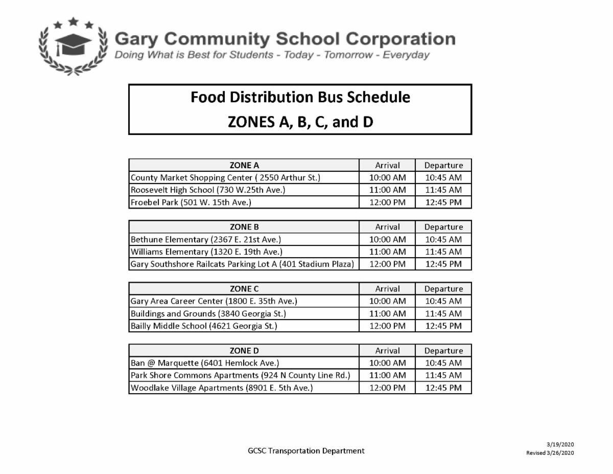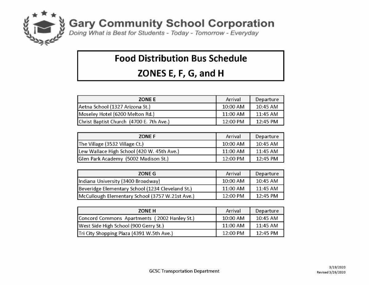 Gary Schools Food Distribution and Student Enrollment will take place Monday from 10:00 a.m. - 1:00 p.m. at the stops listed below: