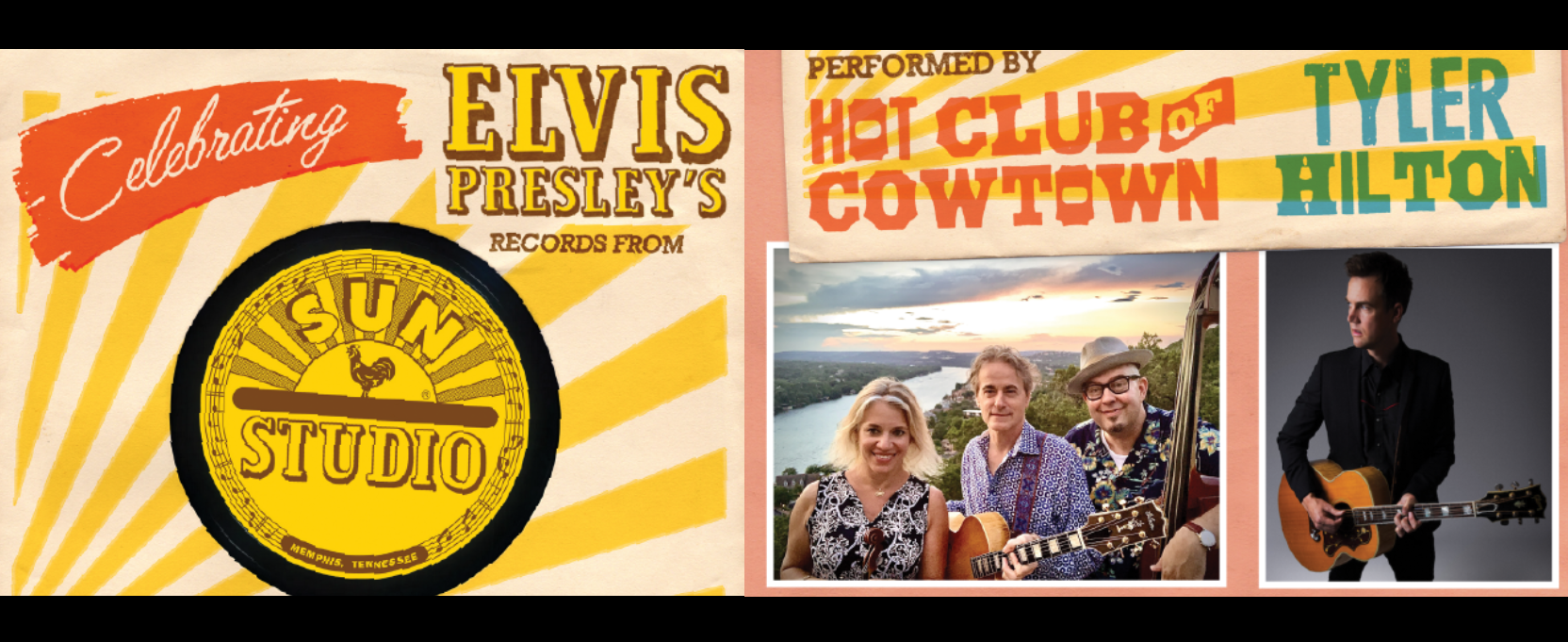 Memphis’s Sun Studios earned the nickname of “The Birthplace of Rock'n'roll,” in part because it was the home of at least 24 of Elvis’s earliest recordings made between 1955 and 1957. Now, more than 70 years after the initial debut of those recordings, Hot Club of Cowtown and Tyler Hilton unite to bring some of these timeless tunes including “That’s All Right, Mama,” “Blue Moon of Kentucky” and “I Got a Woman” to life on stage.
