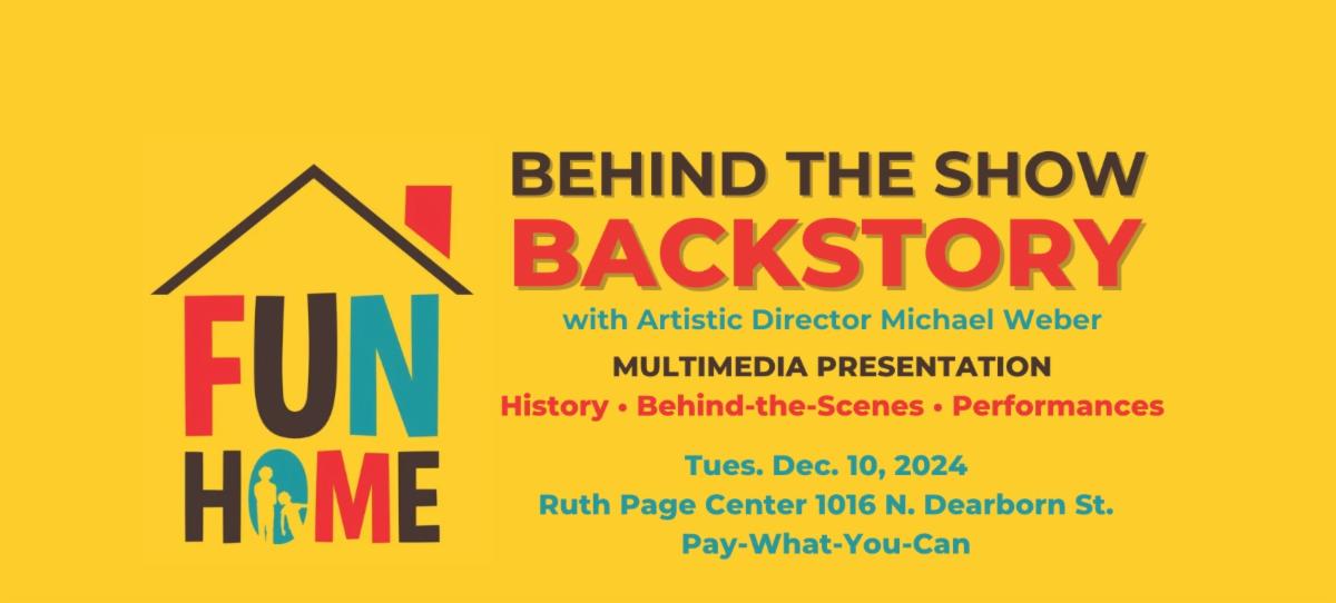 Porchlight Music Theatre is proud to announce Fun Home: Behind the Show Backstory with Artistic Director Michael Weber, Tuesday, Dec. 10 at 7 p.m. at the Ruth Page Center for the Arts, 1016 N. Dearborn St. Weber hosts this multimedia presentation about the Tony-award winning and Pulitzer Prize-nominated musical Fun Home and includes the history of Fun Home, insights into the production, fun facts and guest performances from cast members Neala Barron, Z Mowry and Tessa Pundsack. Tickets are pay-what-you-can with a suggested donation of $25 and reservations may be made at PorchlightMusicTheatre.org.