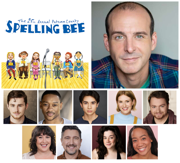 The 25th Annual Putnam County Spelling Bee, part of Paramount Theatre’s BOLD Series, March 12-April 27, is directed by (top, right) Stephen Schellhardt, and features (middle, from left) Ben Broughton as Leaf Coneybear/Carl Grubenierre, Naphtali Curry as Mitch Mahoney/Dan Schwartz/Olive's dad, Nic Dantes as Chip Tolentino/Jesus Christ, Ann Delaney as Logainne Schwartzandgrubenniere/Leaf’s mom, Teddy Gales as William Barfee/Leaf's dad, (bottom) Veronica Garza as Rona Lisa Perretti/Olive’s mom, Jason Richards as Douglas Panch, Elizabeth Stenholt as Olive Ostrovsky, and Shelbi Voss as Marcy Park.