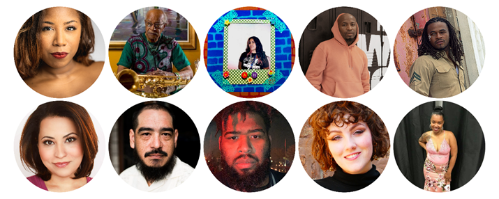 Mallory Raven-Ellen Backstrom (playwright, author, illustrator, and teaching artist): Ari Brown (musician and sincere creative); Ash Busse (teaching artist); Mike D. Chicago (dancer, choreographer, Chicago-footworker, teaching artist, and M.C.); TehRay PHENOM Hale (Hip-Hop artist and mentor); Shalaka Kulkarni (multidisciplinary dancer and choreographer); Eugene A. MALTEZ (sculptor and painter); Allen Moore (experimental turntablist, painter, mixed media artist, educator, and illustrator); Allison Carol Schmocker (visual and multidisciplinary artist); and Tish (dancer, choreographer, mentor, and teacher).
