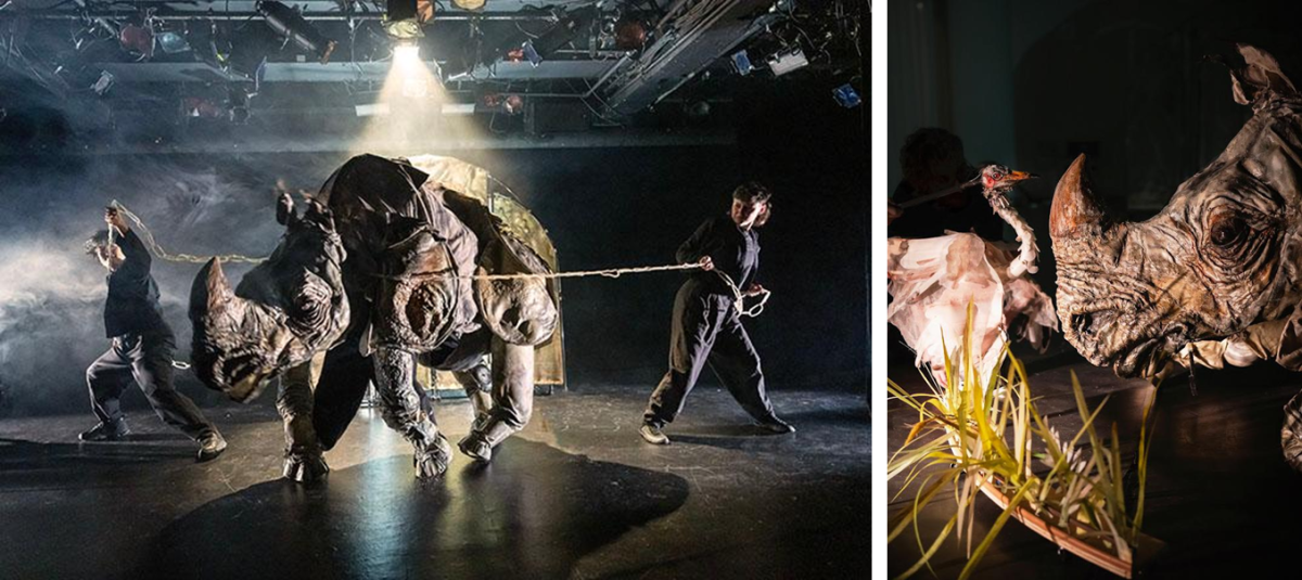 Shivak and company hail from Chicago where Rhynoceron was created with support from The Chicago International Puppet Theatre Festival. Rhynoceron premiered last May at New York’s Puppetopia 2025, where it gave NewYorkTheater a “whoa moment,” calling it “captivating,” “endlessly inventive,” with “cheeky invention.” Shivak’s realistic rhino puppet was also a star attraction in the recent Chicago Cultural Center exhibit, “Potential Energy: Chicago Puppets Up Close.”
