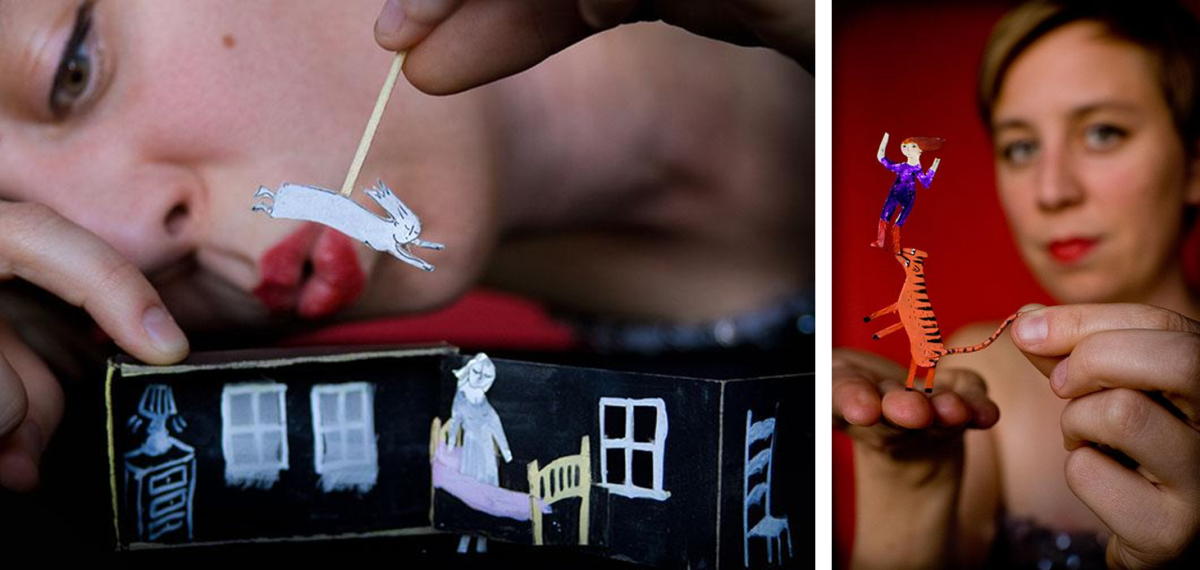 Miniature raconteur and sequined pyromaniac Laura Heit performs teeny tiny puppet shows inside matchboxes. “The smallest, greatest, bravest, show in the world!” Audiences of all ages will delight in the magic and folly of Heit’s miniature circus. There’s Ruby the strong lady. Donna the magician and her magic banana. Bill the Un-Scary Pirate and his seven flying chairs. A fire breathing dragon. And a Brave bunny who is shot out of a cannon, all no bigger than a matchstick. The entire show is projected simultaneously on a screen behind the table making the teeny tiny details of this portable variety show larger than life.