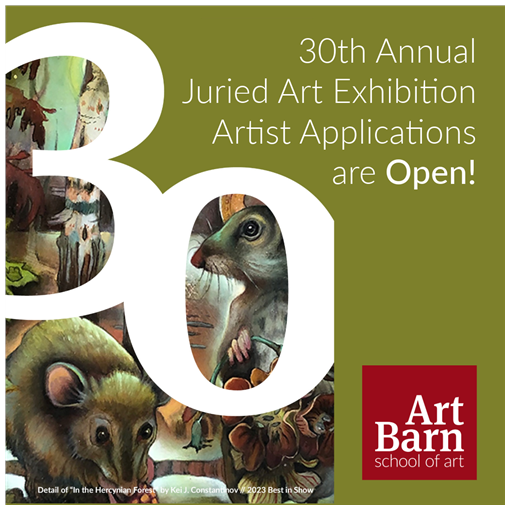 The entry process is entirely online with a deadline for submissions at midnight on February 25, 2024. To learn more visit artbarnschool.org. The exhibition opens April 13 and will run through May 23, 2024 with an opening reception scheduled for April 19 from 5:00 to 8:00pm CST.