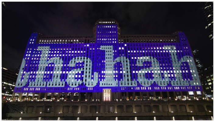 ART on THE MART, presented in partnership with Chicago’s Department of Cultural Affairs and Special Events (DCASE), is an innovative digital art project that transforms a Chicago architectural landmark into a larger-than-life canvas, spanning over 2.5 acres of THE MART along the city’s Riverwalk. Founded in 2018, ART on THE MART is a platform for cutting-edge moving image work by renowned local, national and international interdisciplinary artists. Under the direction of Cynthia Noble, the program has commissioned work by celebrated names like Nick Cave, Barbara Kruger and Charles Atlas, along with projections by Chicago-based artists and local organizations that elevate voices and artists from underrepresented communities.