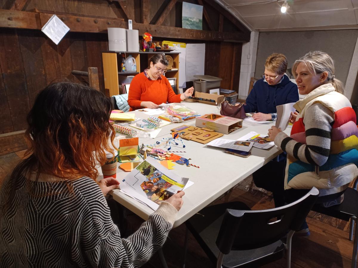 Youth Arts Outreach instructors Hailey Perritt, Anra Rowley, and Kristin McMurtrey meeting with Cara Schmitt, CAC Education Director, to plan magical experiences for young artists