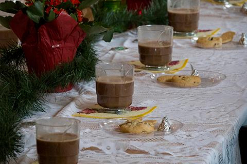 After photos with the cast, families come together in a Victorian-style dining hall to enjoy a festive spread of cookies, chocolate milk, coloring activities and holiday decor.