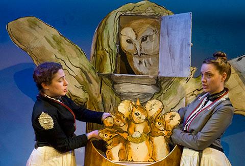 Chicago Children’s Theatre’s Beatrix Potter series is devised by Will Bishop, Lara Carling, Kay Kron, Grace Needlman and Ray Rehberg. Co-directors are Will Bishop and Lara Carling. Performers are Kay Kron, Time Brickey and Charlie Malave. Puppets are by Grace Needlman. Music is by Ray Rehberg. Costumes are by Ian Liberman, based on the original designs by Jillian Gryzlak. Lighting designer is Becca Jeffords. Sound designer is Daniel Etti-Williams. Anastar Alvarez is stage manager.