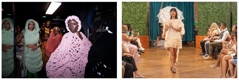 From left: Chicago Fashion Coalition Showcase (photo credit: Inaara Vashnani); Asian Fashion Show (photo credit: AC Photography; Designer: Essenshul; Model: Mia Hitterman)