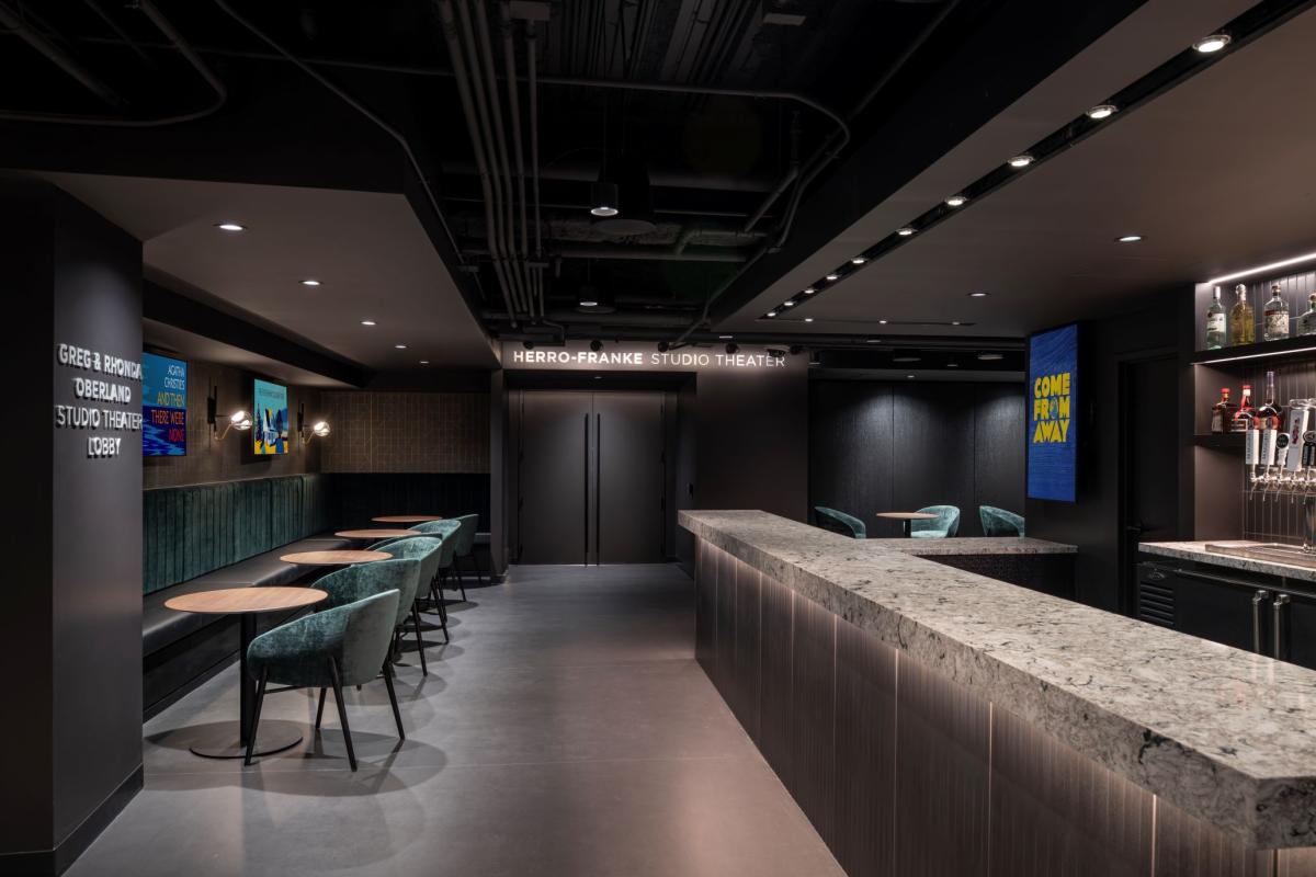 The Herro-Franke Studio Theater, Milwaukee Rep’s black box space for intimate productions, is reimagined with new modular platforms and seating that allows for audiences of 182 to 224 patrons, staging plays with larger casts, and greater production flexibility. The Stackner Cabaret, which was renovated in 2018 by Uihlein-Wilson Architects in advance of the larger transformation project, also has state-of-the-art production capabilities, updated front- and back-of-house amenities including a full bar and kitchen for a pre-show dining experience, and increased seating capacity for audiences of up to 186 patrons.