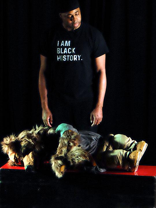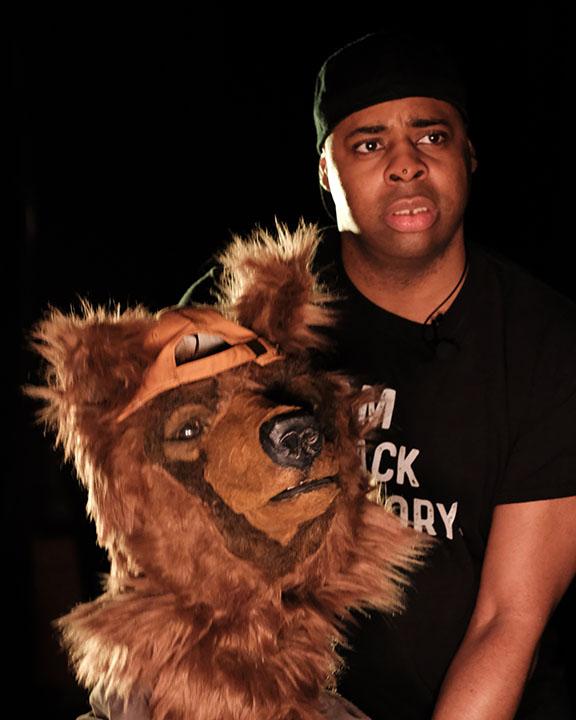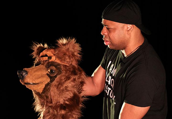 Jerrell L. Henderson created, co-directed and performs in the new virtual puppet play I Am the Bear. Photo credit: Elias Carmona