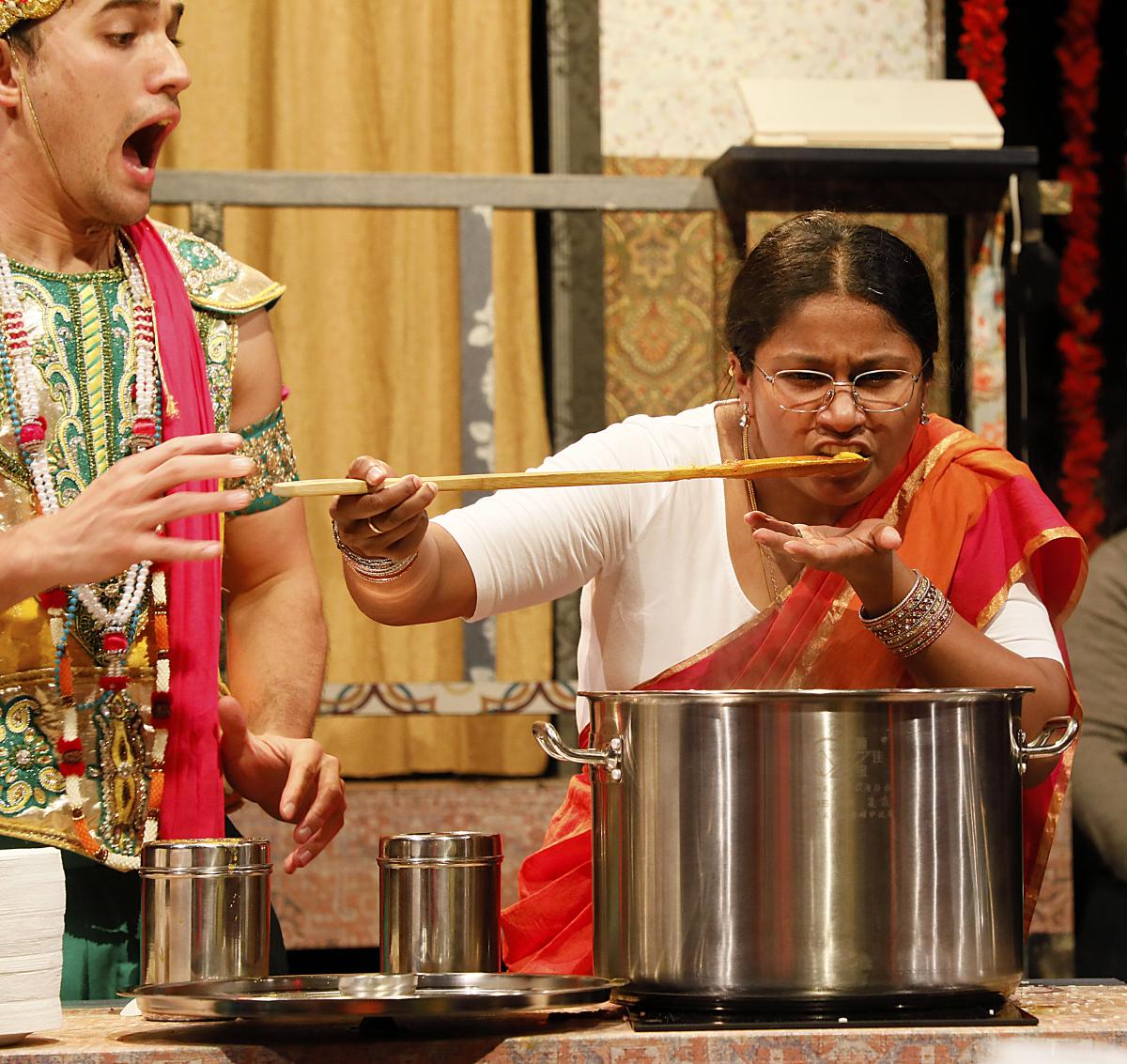 Although the story is scripted, the fourth wall doesn’t exist, and there’s a fair bit of improv – and a lot of laughter – as both Mrs. K. and James interact with the audience. You might be called upon to pass out Indian scarves or to carry stuff for Mrs. K. You might be scattering flower petals or stirring her simmering pot of dahl. Don’t worry, it’s all fun and hilarious! After the show, you’’ll even get to sample the dahl.