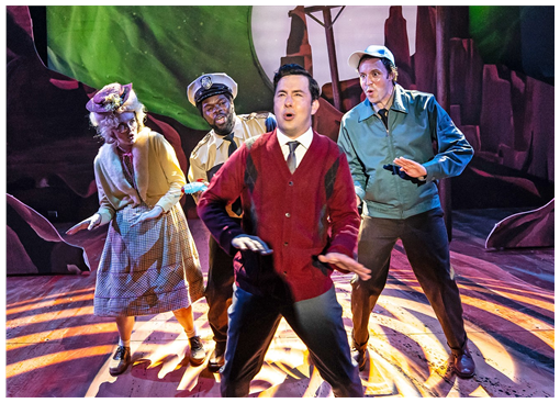 You can relax, It Came From Outer Space is a new musical by Joe Kinosian and Kellen Blair (the people who wrote Murder for Two). It’s a takeoff on Universal’s 1953 3-D movie starring Richard Carlson and Barbara Rush. Now considered a classic of science fiction cinema, It Came From Outer Space is based on a Ray Bradbury film treatment called The Meteor. It Came From Outer Space is a clever comedy, with lots of campy melodrama, tongue-in-cheek dialog, physical humor, slapstick and puns that will make you groan. I loved it! 4 BIG Spotlights