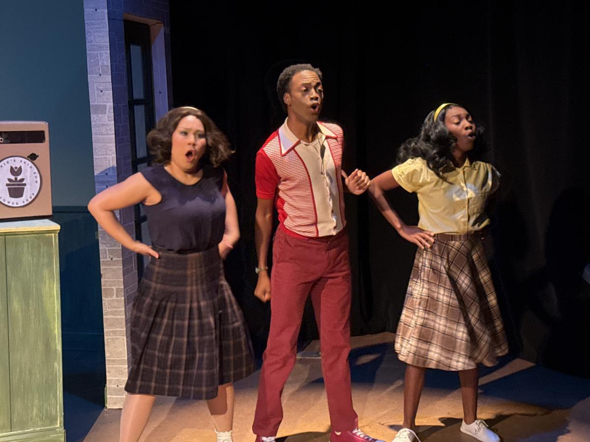 In an interesting riff, the Skid Row trio, named after girl groups of the 60’s, became two girls and a guy. Chiffon (Marie Molina). Crystal (Taylor Morris) and Ronnie (Darrow Richmond) were equally good singing backup or belting out Little Shop of Horrors, Da-Doo or Don’t Feed the Plants.