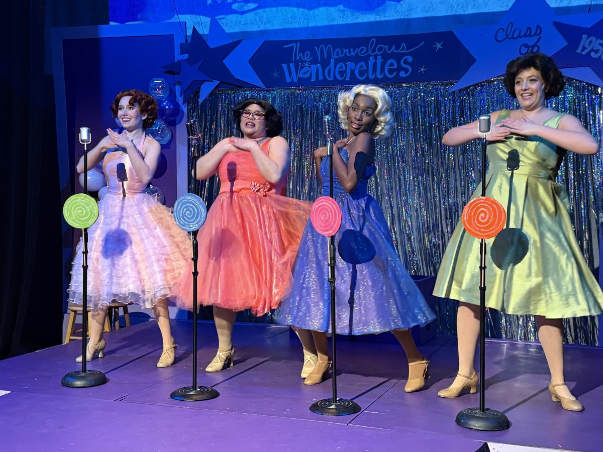 The planned entertainment for the 1958 Springfield High School prom was unable to perform (Billy Ray was suspended), so the planning committee went with plan B. Four girls, Betty Jean “BJ” (Madison Meeron), Cindy Lou (Julia Limoncelli), Suzy (Taylor Morris) and Missy (Taylor Morris), the Marvelous Wonderettes are getting their chance to shine.