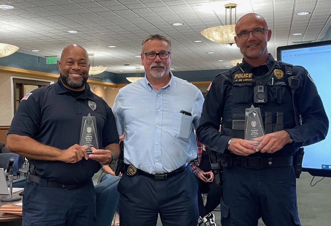 Sergeant Jack DeLeeuw currently serves as a patrol shift commander and has also served as an evidence technician, field training officer, and school resource officer. Officer Kevin Cooley currently serves as the School Resource Officer at Wilbur Wright Middle School and has also served as a field training officer during his time with the police department.