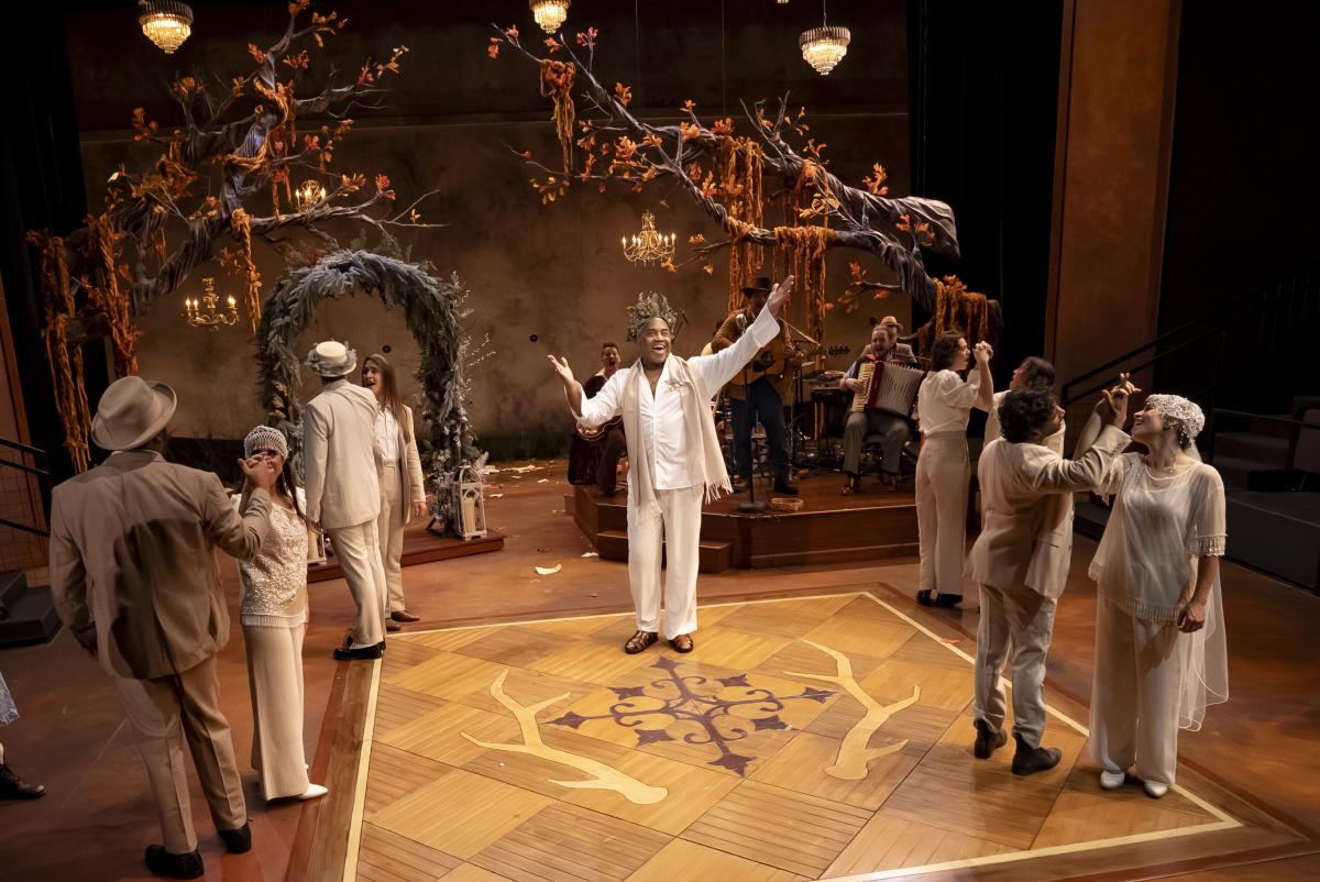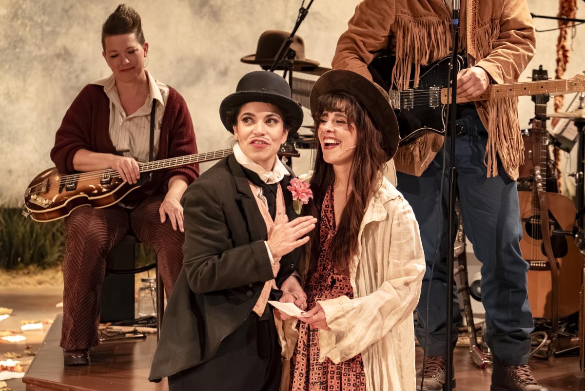 Many of the actors play multiple parts, so even though many are mentioned throughout the review, I thought I would include all of them here. They are: Janet Ulrich Brooks (Agent/Mama Corin/Martext/Miss Amiens), Elisa Carlson (Ensemble/Ardenite), Matt Edmonds (Ensemble/Announcer/Ardenite), Elliott Esquivel (William/Caveman), Torrey Hanson (Adam/Referee/Papa Corin), Dakota Hughes (Phoebe/Hisperia/Frankie Flow), Anand Nagraj (Oliver/Ardenite), Jeff Rodrigues (Andy/Bronco) and Grace Steckler (Silvia/Ensemble). Many of them are also musicians, but I couldn’t find a list of them.