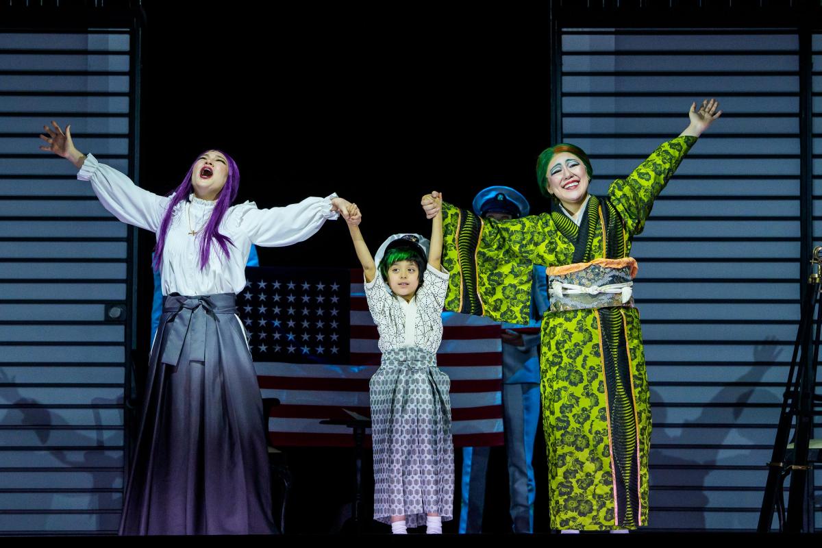 Karah Son as Cio-Cio-San, Florence Agpalo as Trouble, and Nozomi Kato as Suzuki. Photo by Todd Rosenberg