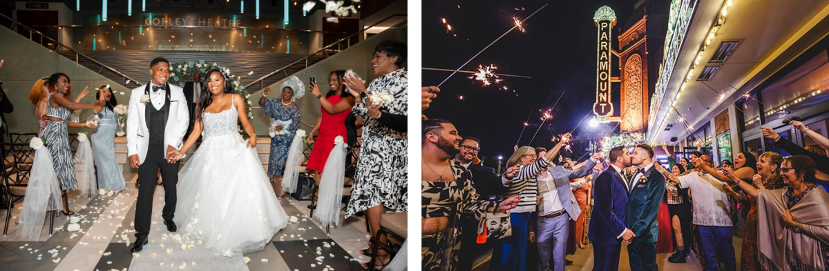 Paramount’s Special Events team also stages beautiful weddings and receptions in Paramount Theatre’s Grand Gallery, with limited availability, also in the heart of downtown Aurora.