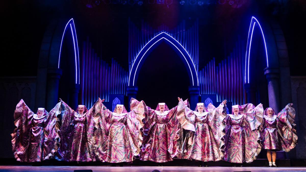 Just a quick note: the musical version of Sister Act is slightly different from the movie starring Whoopi Goldberg as Delores. Instead of Reno and San Francisco, these sisters live in Philadelphia. Instead of a soundtrack heavily influenced by Motown, Alan Menken’s score pays tribute to 70’s pop and disco.